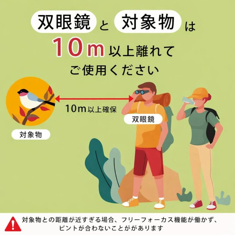 逆に、「美術館で目の前の絵画のタッチを見たい」「バードウォッチングで数メートル先の鳥を見たい」といった近距離での使用には向いていないので注意してくださいね。